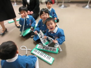 満3歳・年少組による合奏『ひげじいさん』『かえるのうた』