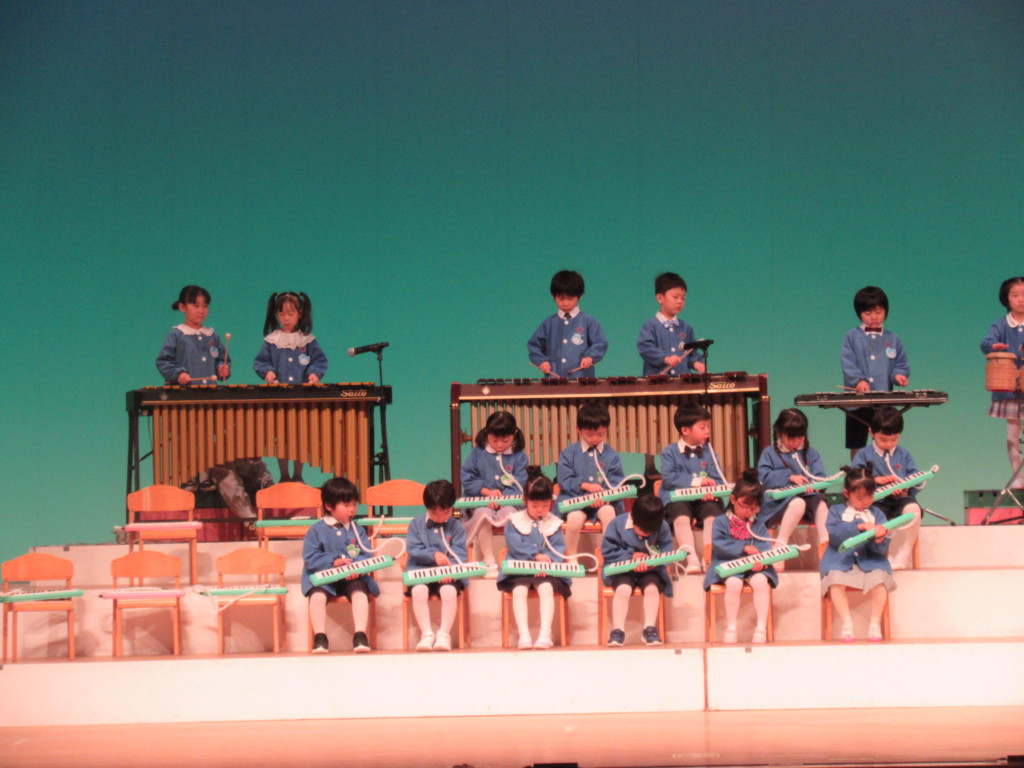 年中・年少組による合奏『ふるさと』『やまのおんがくか』